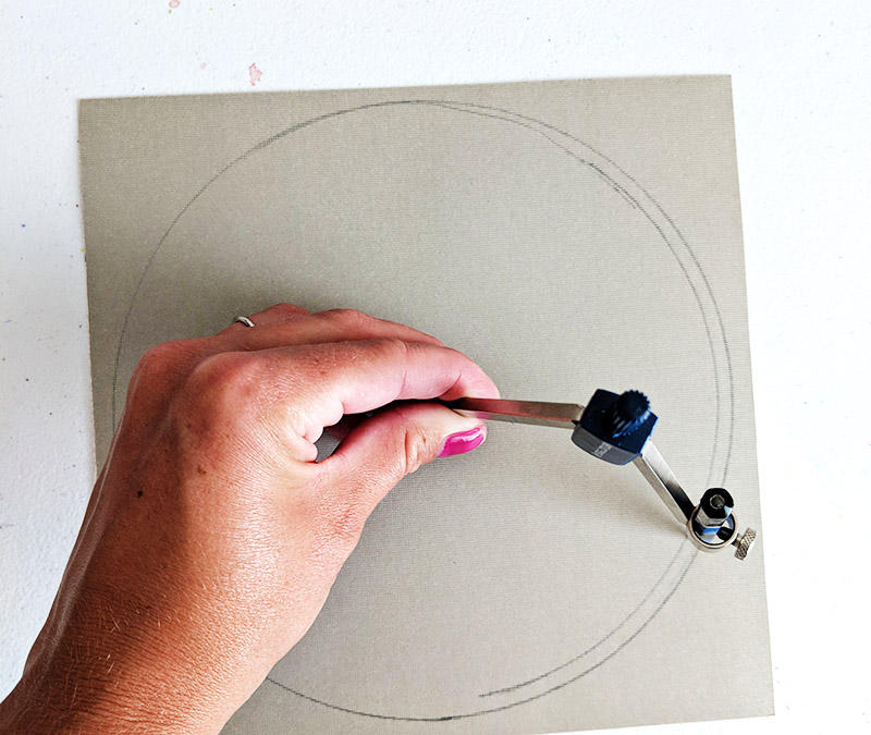 Step 3: Once the glued on pieces have all dried, you can cut out the final shape that you want your landscape to be. Since I wanted a circle landscape, I traced a circle on the backside of my base paper and then cut it out. When you flip it over- you have a nice trim circlular piece of art!